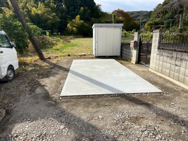 工事場所の敷地や近くにはミカンの木が沢山ありしっかり頂きました。本当甘くて酸っぱくもありロケーションも最高で幸せを感じました。共に年をとったな~共感じました。そんな素敵な場所でのお仕事は砂利の駐車場に土間コンクリート床を希望との事で、素敵な若夫婦からの依頼でした。着工前と施工後の写真を添付しましたので参考にしてください。皆さんも寄居町行ってみてください。色々ほっこりしますよ。